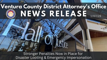 A new set of public safety laws strongly supported by Ventura County District Attorney Erik Nasarenko have taken effect in 2026, strengthening penalties for looting and the impersonation of emergency personnel during declared emergencies. “Ventura County is no stranger to disaster, and our residents know firsthand how devastating these events can be,” said District Attorney Nasarenko. “When families are evacuating from a dangerous fire and first responders are risking their lives, we can’t have criminals exploiting the chaos and devastation. These new laws will allow us to crack down on looters and criminal impersonators.” Governor Gavin Newsom signed companion legislation in Assembly Bill 468 and Senate Bill 571 into law in October. AB 468, authored by Assemblymember Jesse Gabriel, strengthens penalties for looting during declared emergencies and extends protections into the recovery and rebuilding phase following disasters. SB 571 reinforces penalties for individuals who impersonate firefighters, law enforcement officers, or…
