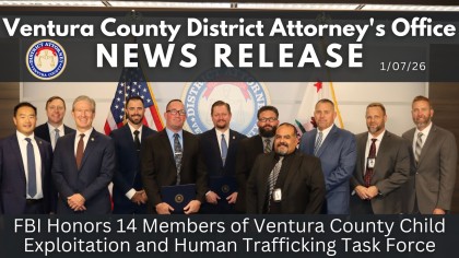 The Los Angeles Field Office of the Federal Bureau of Investigation formally recognized 14 members of the Ventura County Child Exploitation and Human Trafficking Task Force for their outstanding investigative work protecting children and holding offenders accountable. The ceremony was held at the Ventura County District Attorney’s Office on January 6, 2026. The honorees included investigators, detectives, and computer forensic examiners from the Ventura County District Attorney’s Office and the Ventura County Sheriff’s Office. The task force was created in December 2022 through agreements with the FBI and the Ventura County District Attorney’s Office and the Ventura County Sheriff’s Office. The collaboration was established in response to the significant increase in children being exposed to online predators and sexual exploitation.