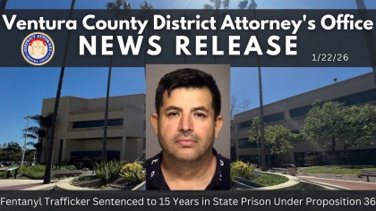 Ventura County District Attorney Erik Nasarenko announced today that Jose Trinidad Bueno Garcia (DOB 02/11/75), of Van Nuys, was sentenced on January 21, 2026, to 15 years in state prison for leading a large-scale fentanyl trafficking operation impacting Ventura County. Garcia previously pled guilty to conspiracy to possess fentanyl for sale. At the time of his plea, Garcia admitted that the offense involved more than four kilograms of fentanyl, triggering a significant weight enhancement. He also admitted that the crime involved a large quantity of contraband and was carried out with planning, sophistication, and professionalism. “This defendant led a drug trafficking organization responsible for moving an enormous amount of fentanyl into our community, putting countless lives at risk,” narcotics prosecutor Devin Mirchi said. “This sentence reflects the seriousness of the defendant’s conduct and sends a clear message that fentanyl trafficking will be met with significant consequences in Ventura County.”