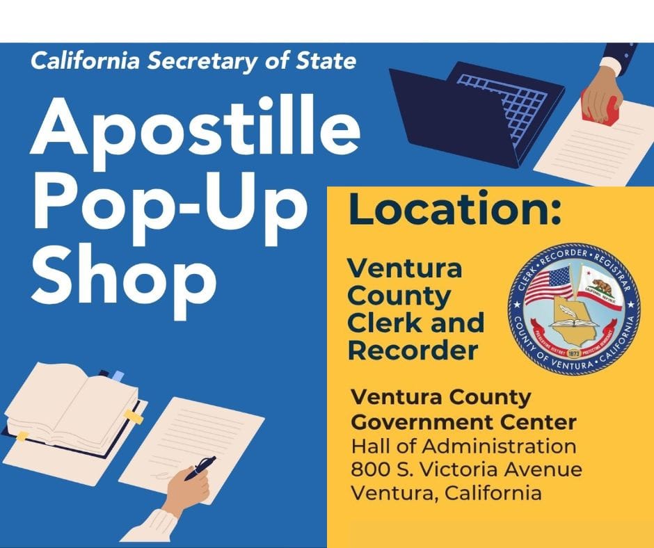 DateJul 29 2025Expired! Time 9:00 am - 4:00 pmCA Secretary of State Apostille Pop-Up ShopShare this event+ Add to Google Calendar+ iCal / Outlook exportThe event is finished.