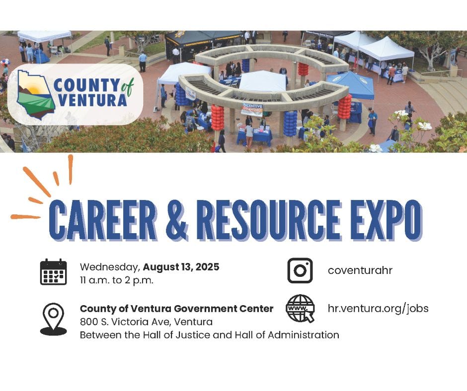 DateAug 13 2025Expired! Time 11:00 am - 2:00 pmVentura County Career & Resource ExpoShare this event+ Add to Google Calendar+ iCal / Outlook exportThe event is finished.